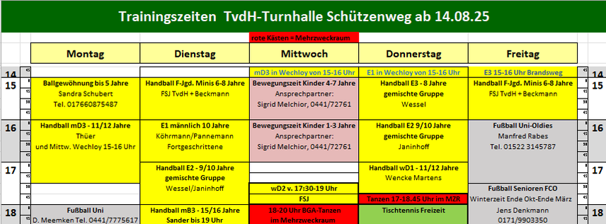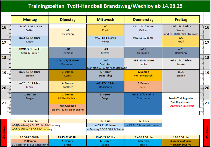 Handball-Trainingszeiten am Brandsweg und Wechloy für Erwachsene/Jugendliche